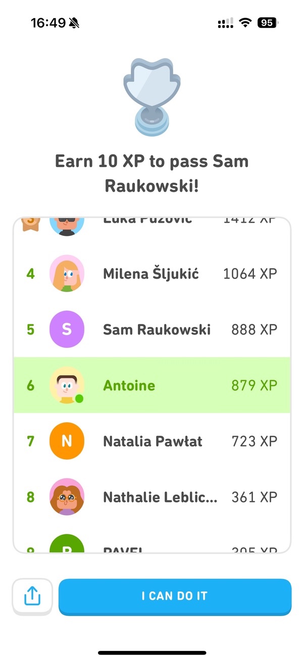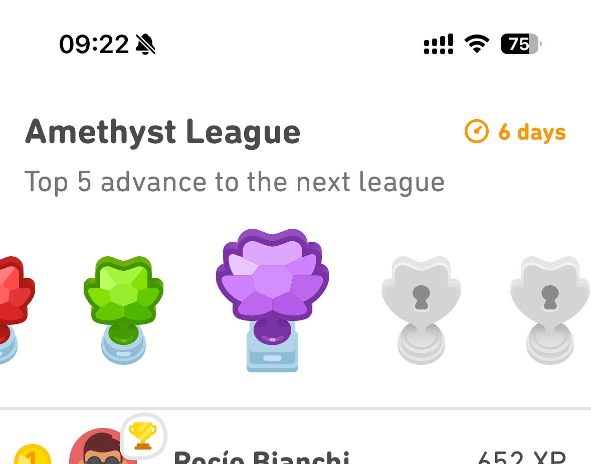13. 10 leagues you move through based on XP earned with rewards for finishing at the top of your current league every week