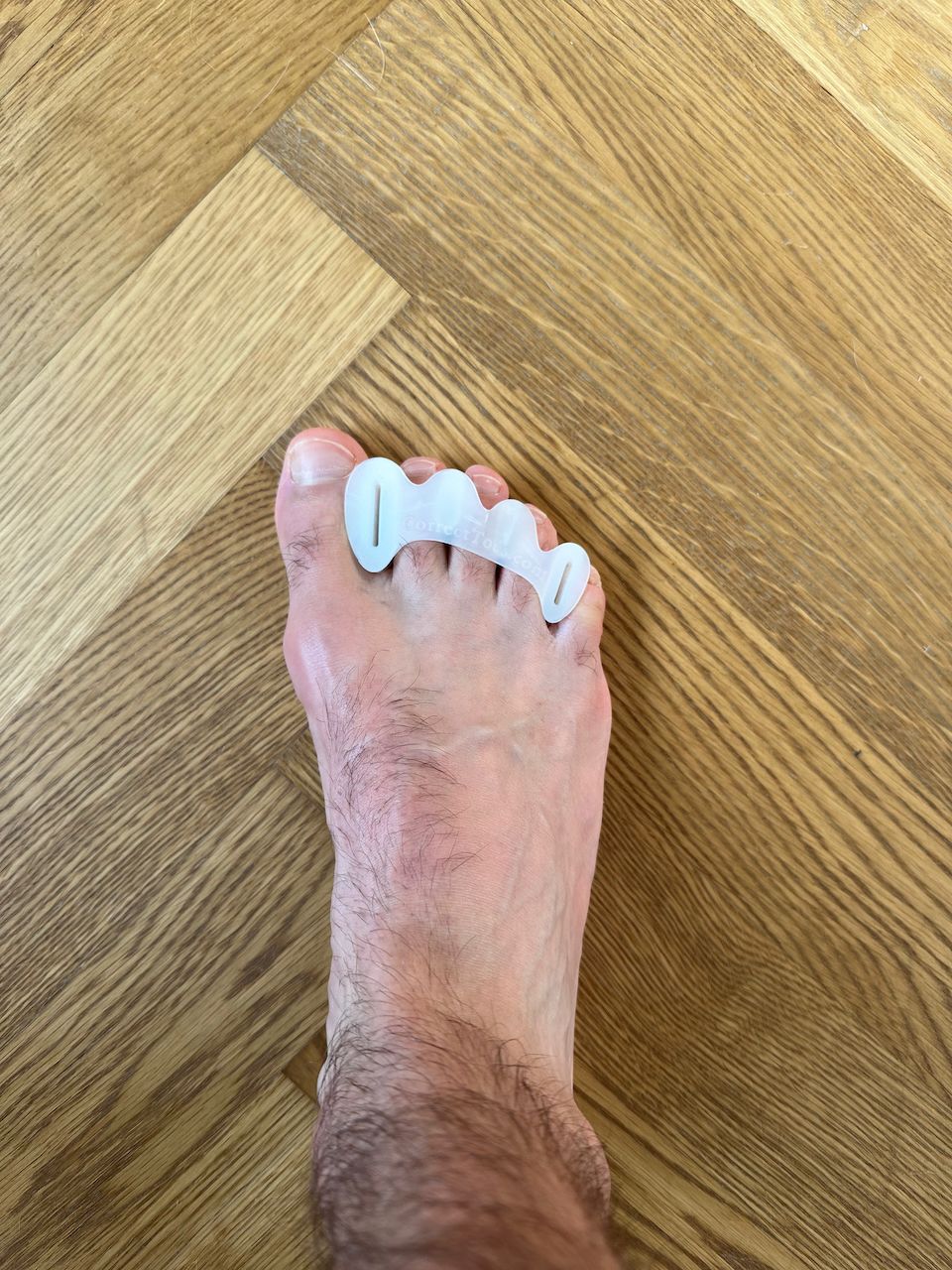 I’ve been using the toe spacers from Correct Toes, and they fit those criteria nicely. I put them on at the start of the day and remove them before going to sleep. After a few days, you don’t even notice you’re wearing them (I'm even running with them).
