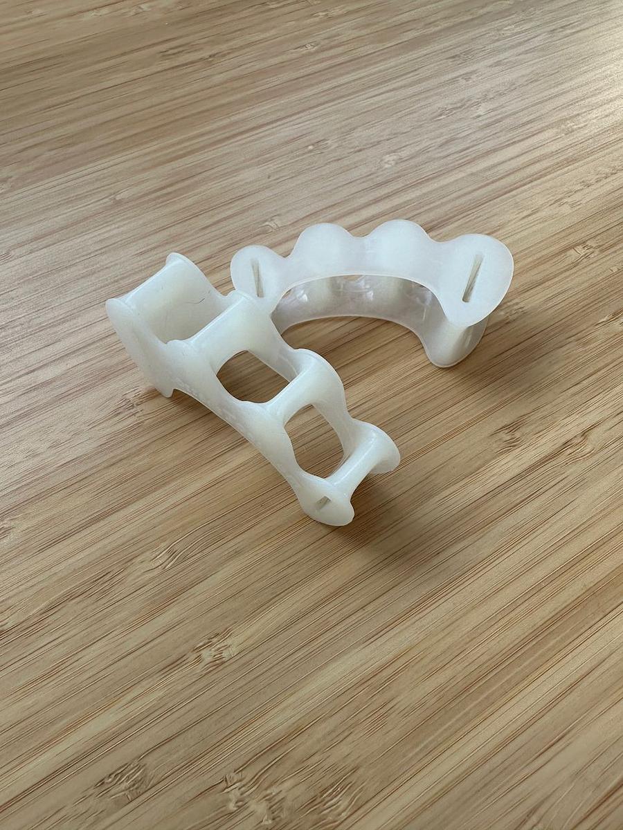 Notice at both extremities the small openings. Those can be used to extend the toe spacers depending on the shape of your feet.