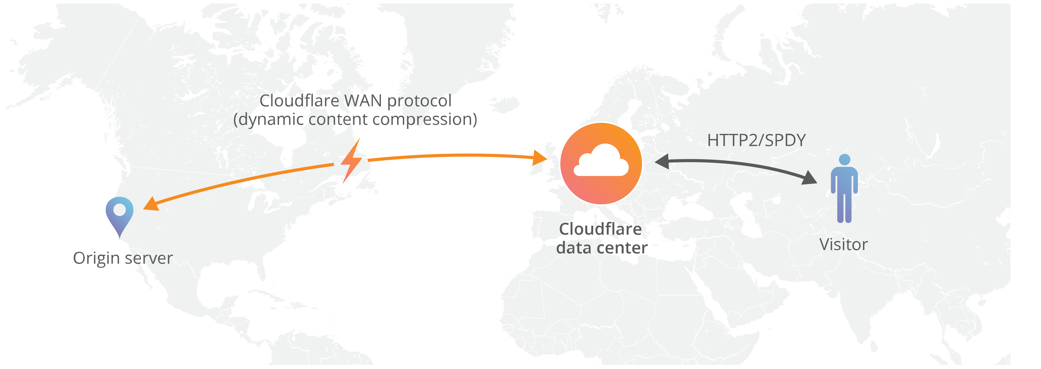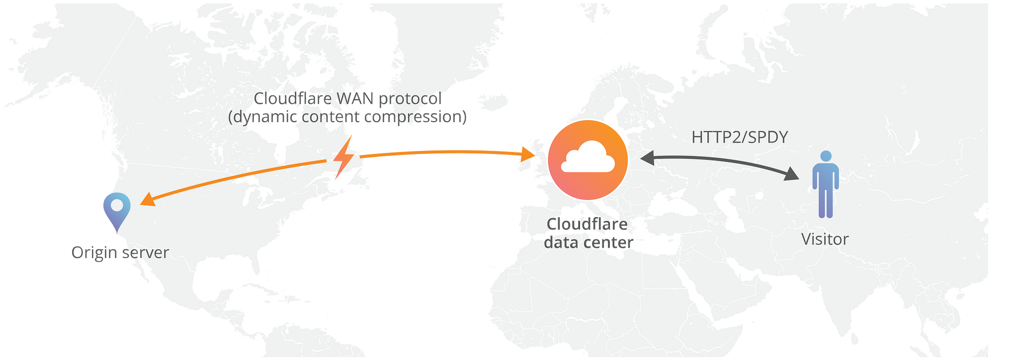 The idea behind Railgun is to keep a connection opened between Cloudflare’s edge servers and yours. And while they’re at it, they delta-compress pages to send less data over the network.