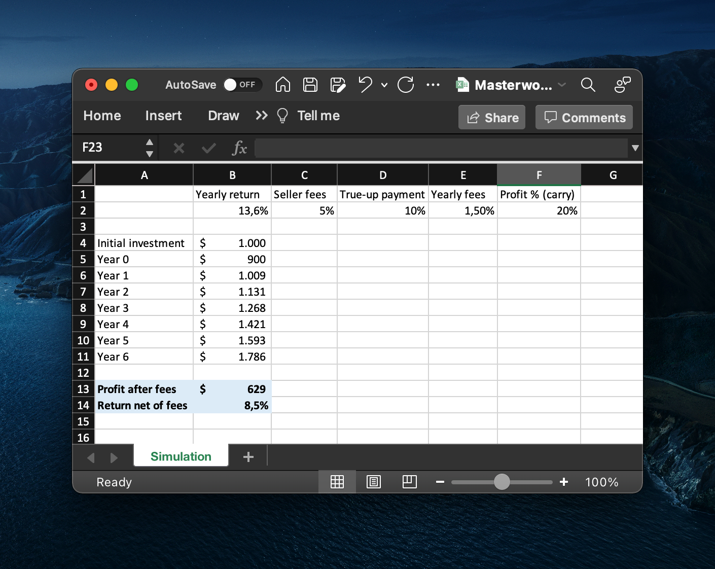 However, Masterworks might still belong in your portfolio depending on the return you would expect stocks to have in the future. You can play around in the Excel spreadsheet to see in what scenario an investment would make sense for you.