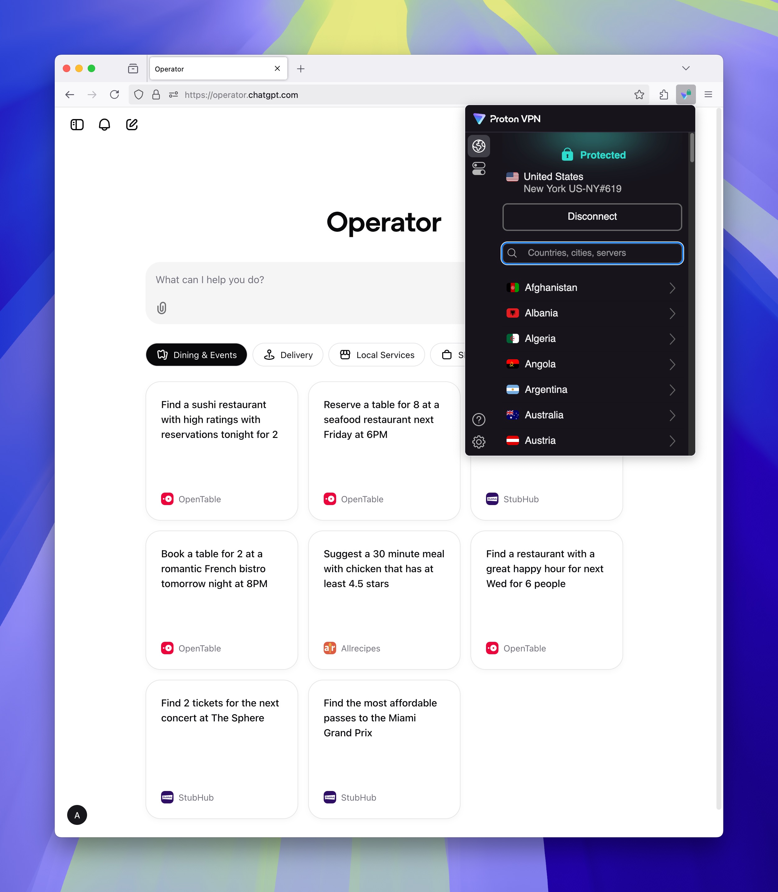 Just install the VPN application, and you should have access to OpenAI's Operator or Sora. This approach, however, has a limitation...