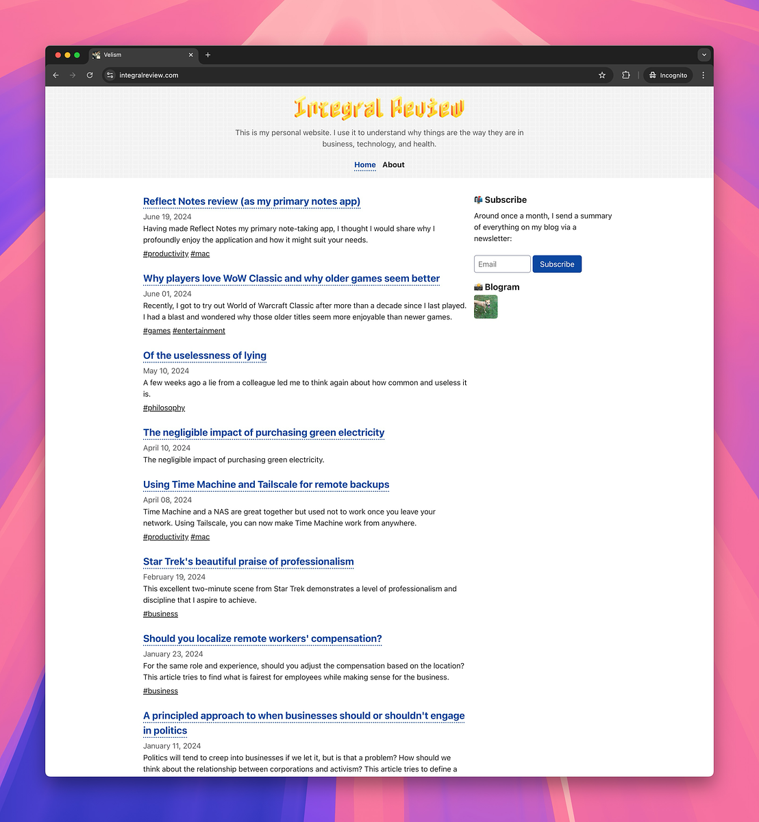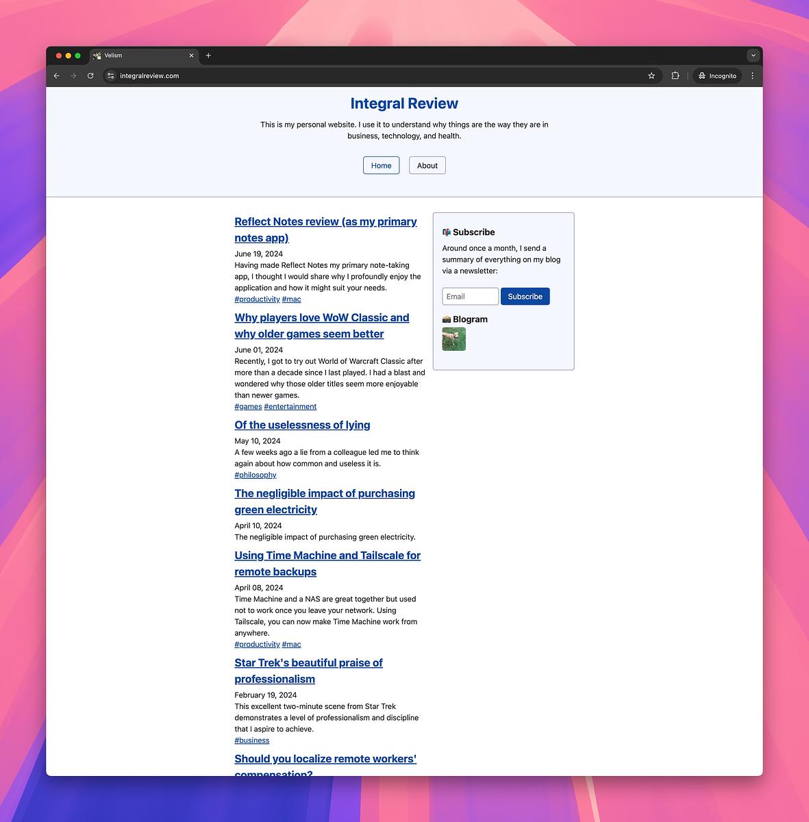 The result is https://velism.com. Building this blog engine was an interesting problem as I also wanted a system that was decently customizable. My solution was to minimize the use of HTML and rely on the simple.css framework. Users can then provide custom CSS that gets added to their own blog. This gives a lot of creative freedom for a reasonable amount of work.