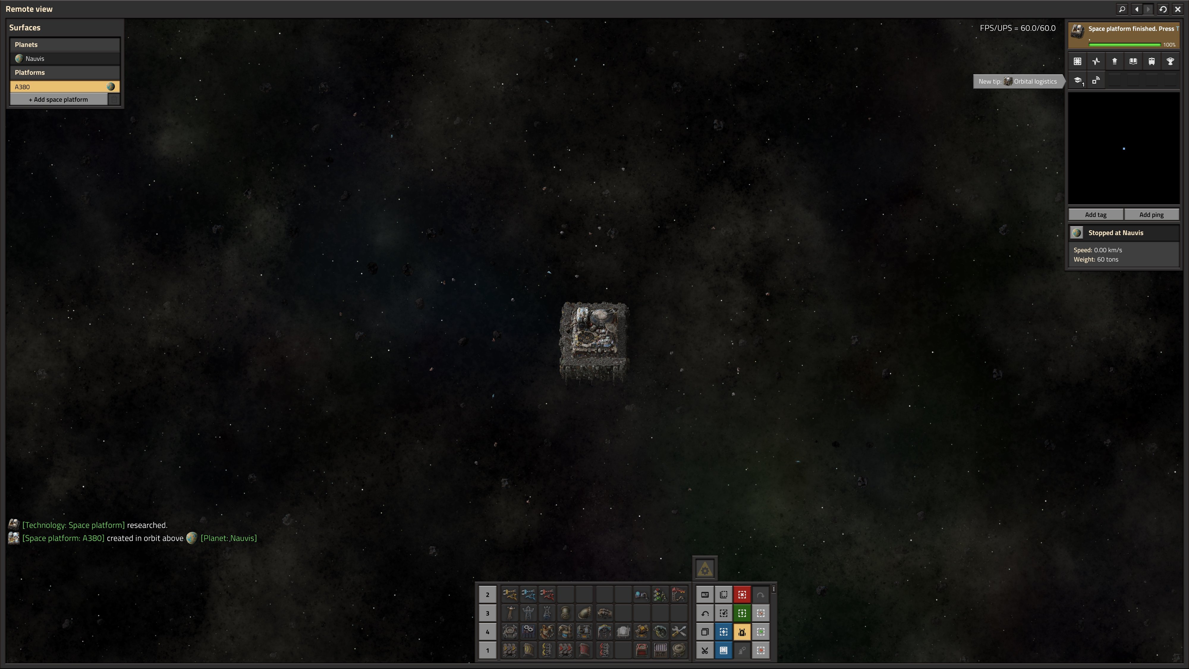 Finally in space on Factorio's Space Age extension. Awesome experience so far and looking forward to all the new content the devs have added!