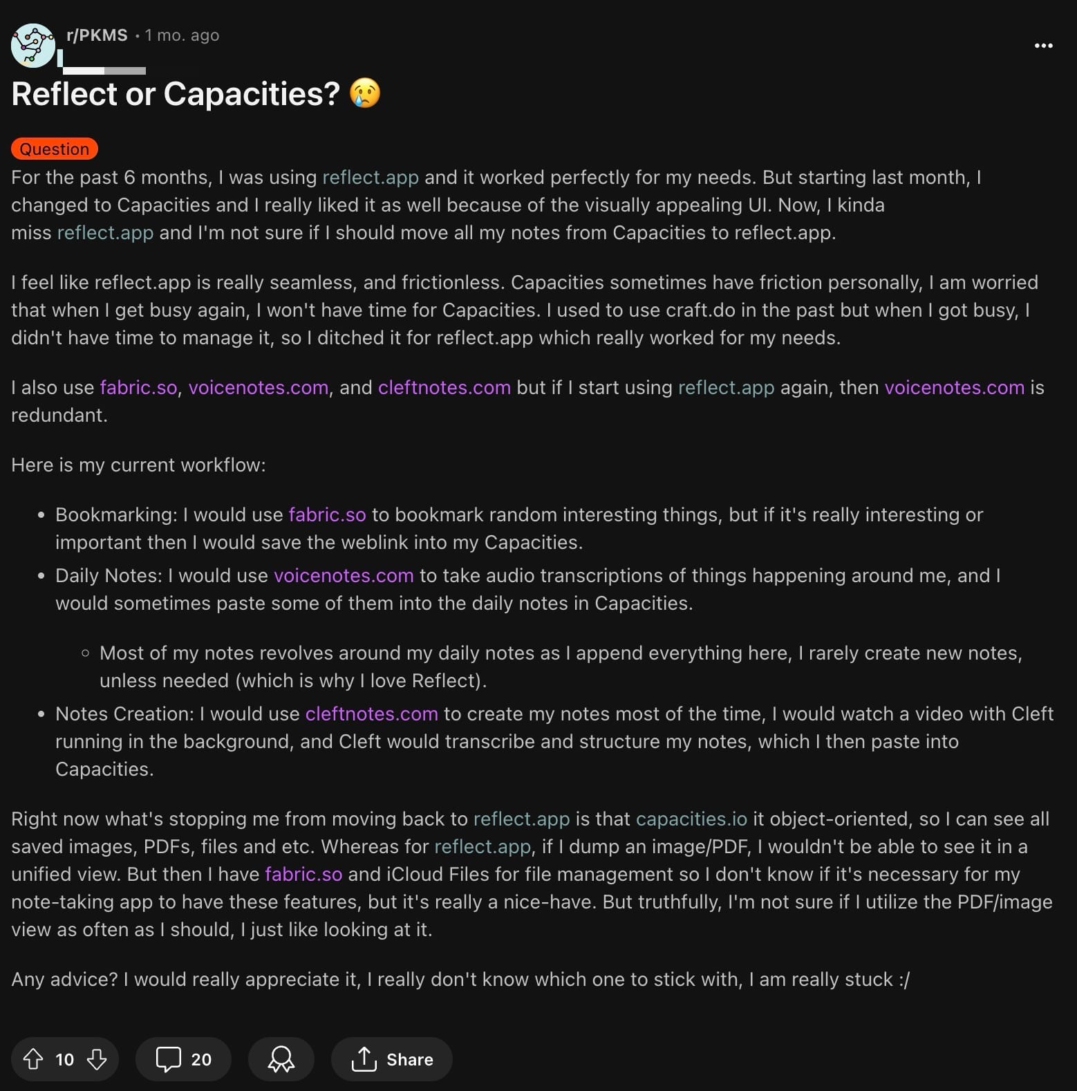 Before I share my take on Reflect, I think it's important to touch on the risk of looking at yet another note-taking application: