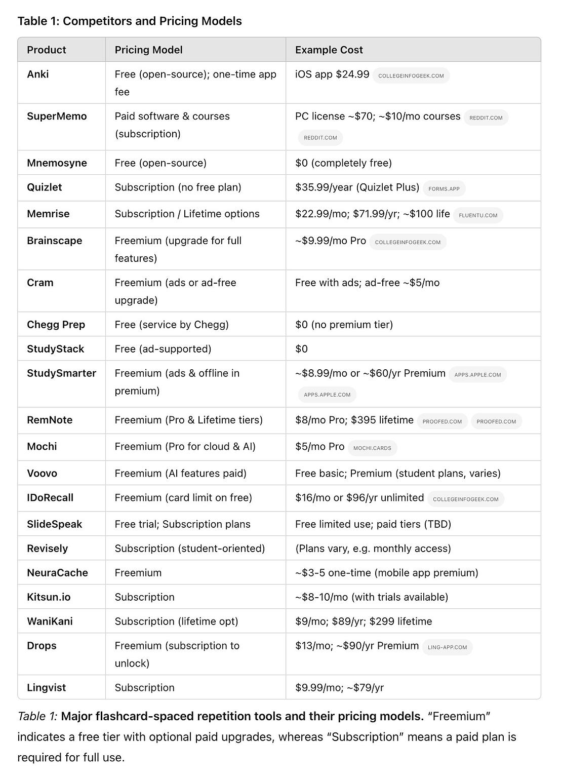 I tried a similar regarding to the one I made on Operator a couple of days ago and asked to get some market research on flash cards software similar to Anki. The output was miles above what I had before. But it still was far from perfect: