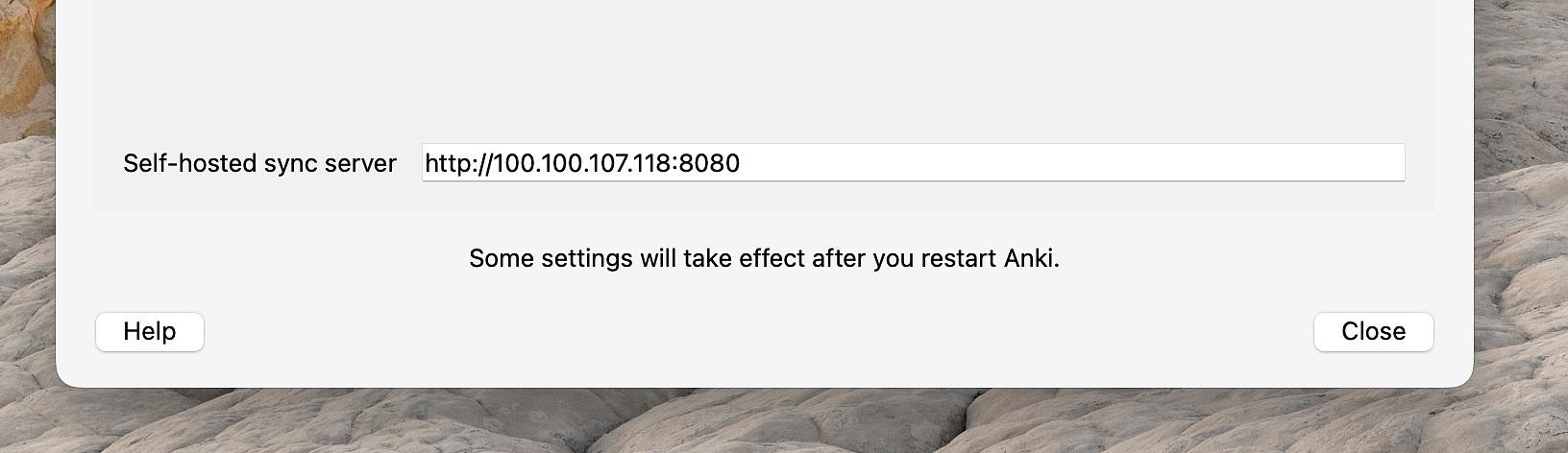 It's now time to set things up in Anki. In the settings, provide the sync server IP and port. Make sure to use HTTP instead of HTTPS as we haven't set it up. For example: