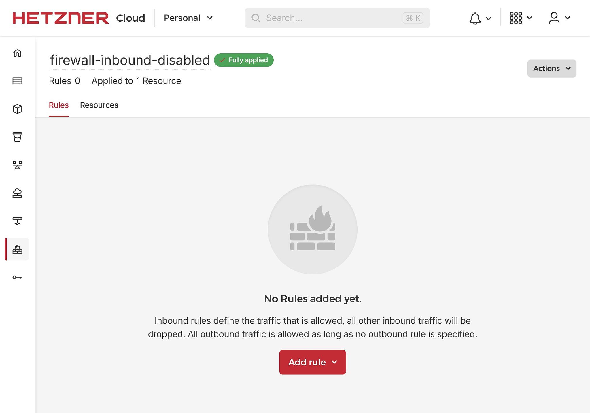 Here's the configuration I've been using for years on Hetzner. Basically, I have 0 rules allowing for inbound traffic.