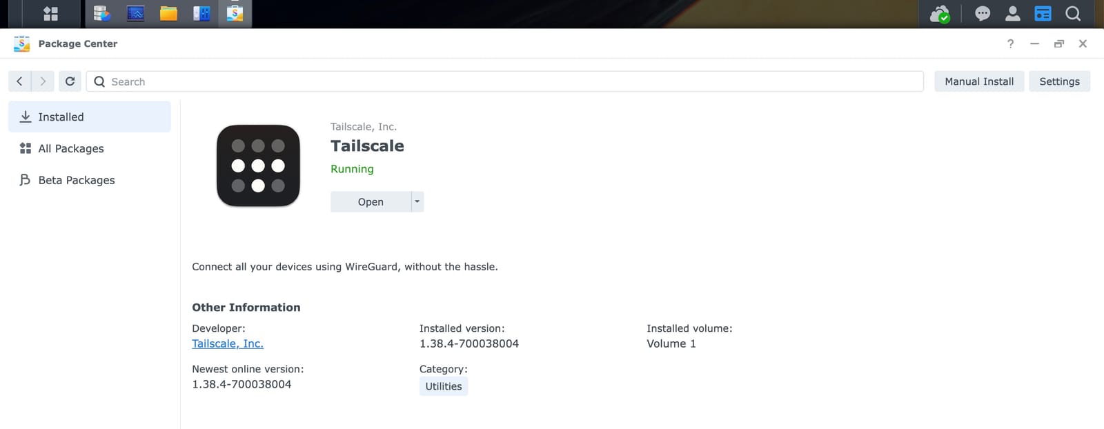 Now, you need to install Tailscale on your NAS. They provide multiple packages that can be installed on the most popular systems (in particular Synology and QNAP).