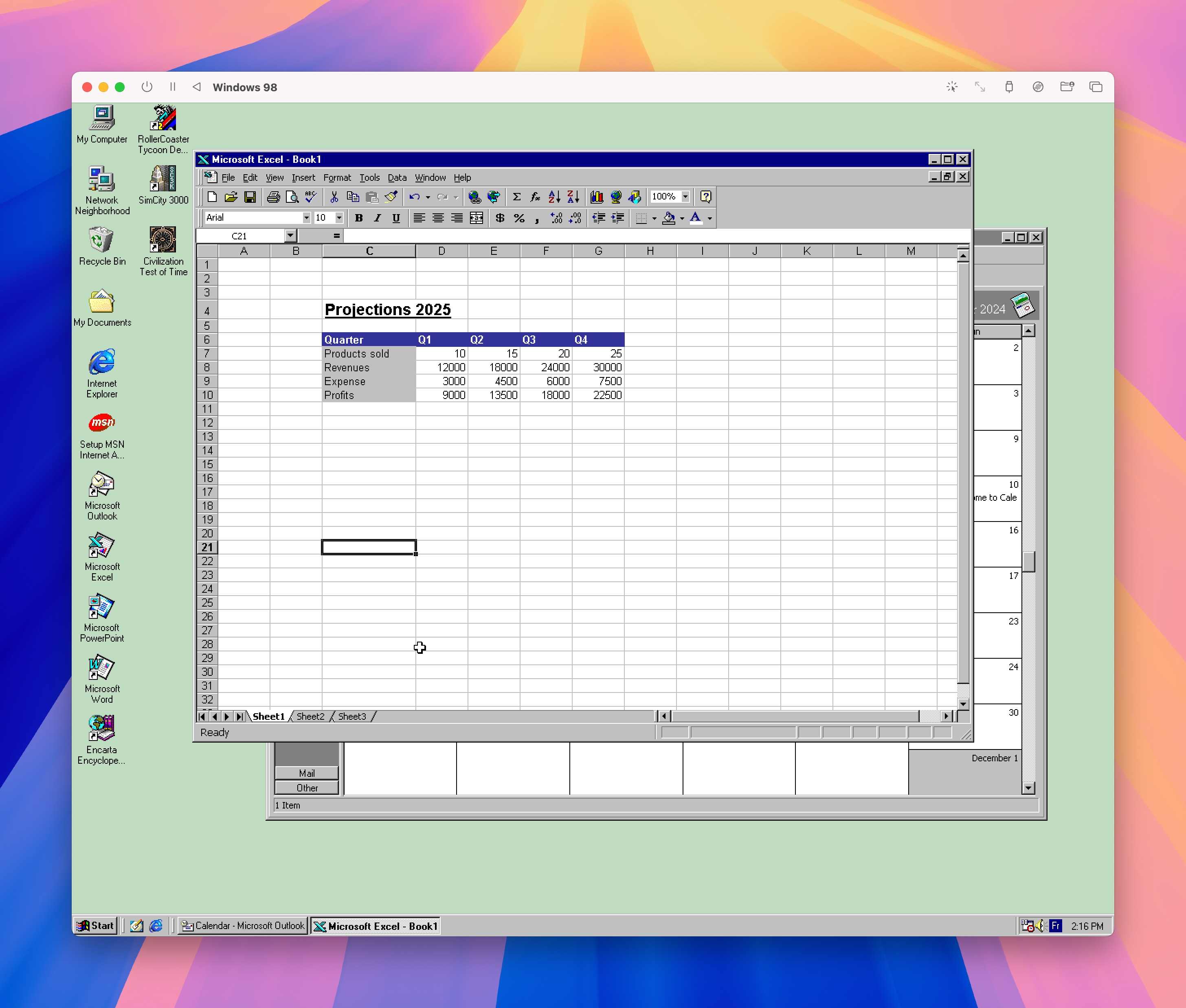 Out of curiosity, I also played around with Office 97 Professional Edition and was surprised by how little has changed. Word and Excel are basically the same, and most people wouldn't miss any features from the latest version. Since 97, it's mainly the internet that has changed those applications by making collaboration and sharing a lot easier.